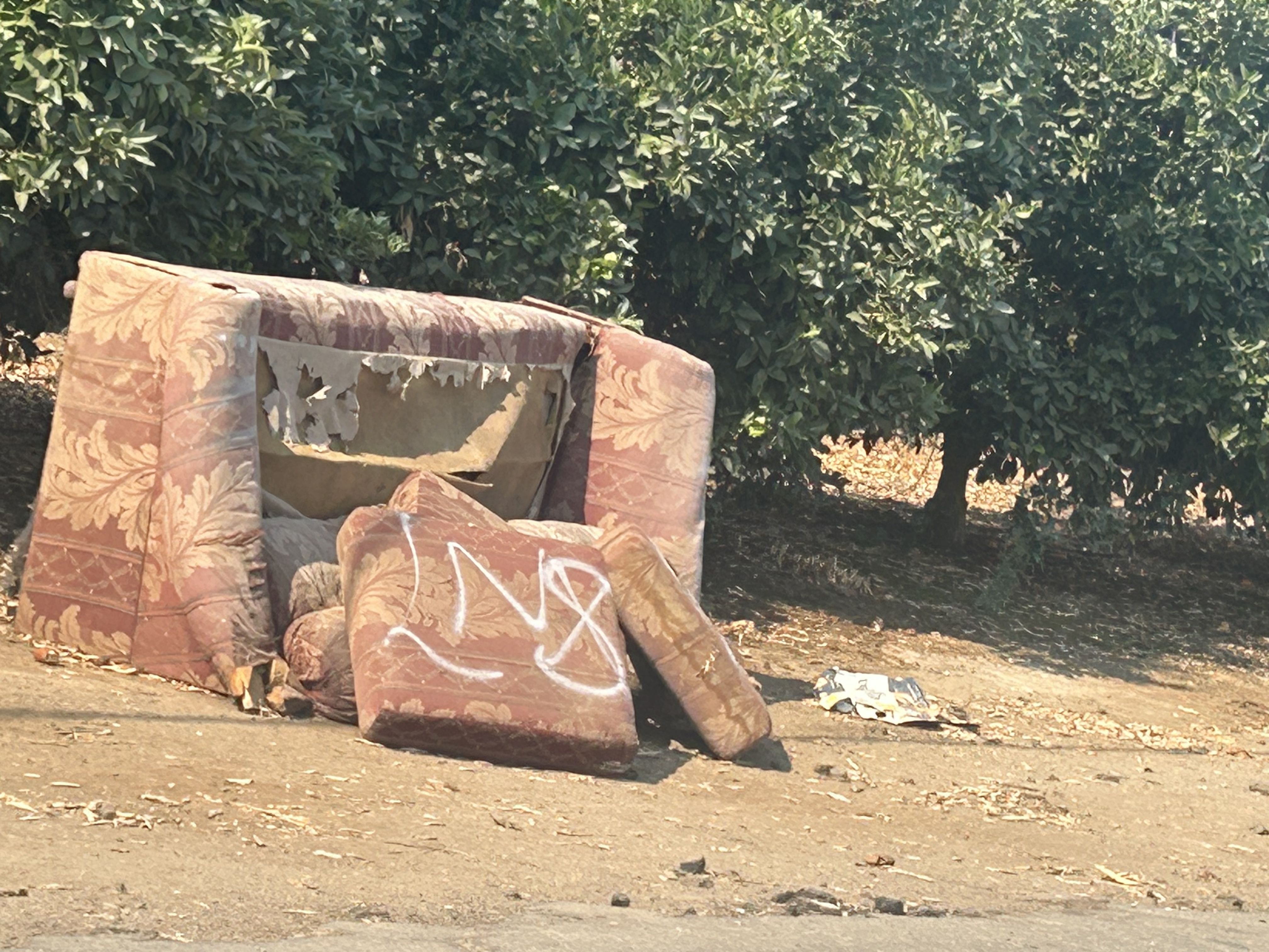 Bolsas de basura negras,colchones,llantas unas tablas con unos fieros un sofa